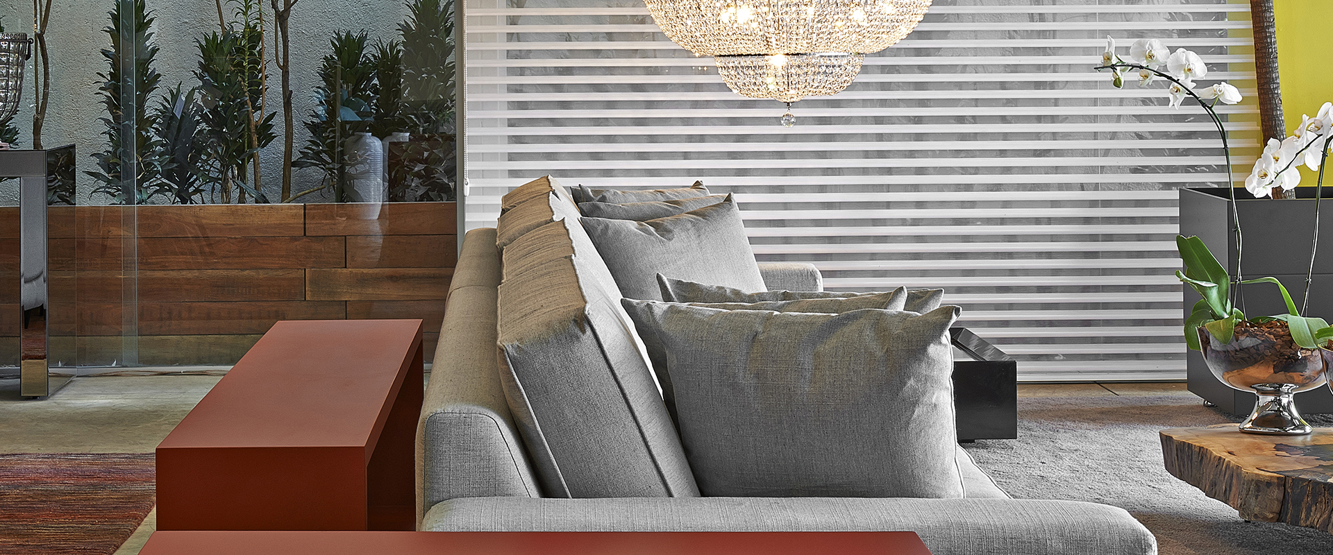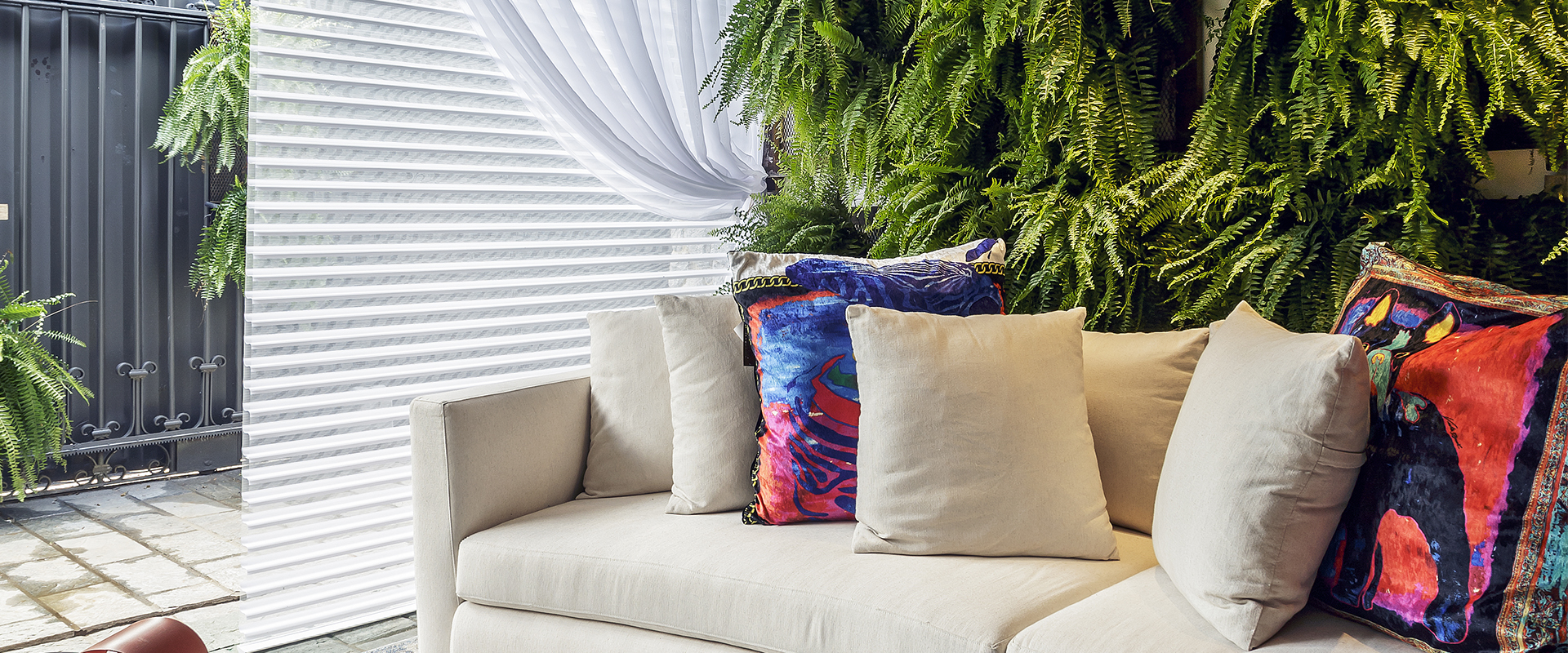 É DE FÁCIL INSERÇÃO EM PROJETOS DE DECORAÇÃO QUE BUSCAM PRIVACIDADE E TRANSPARÊNCIA NUMA MESMA CORTINA